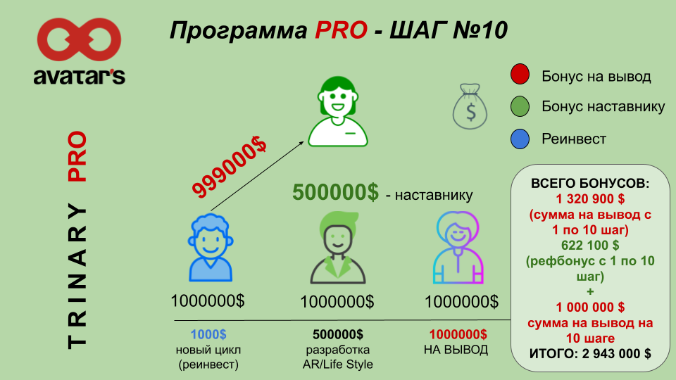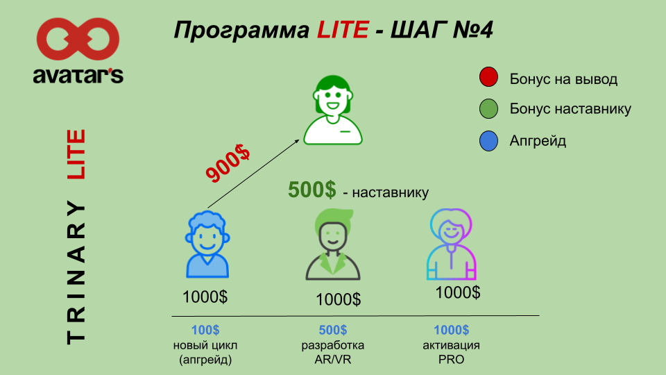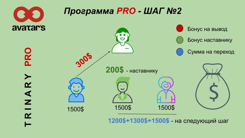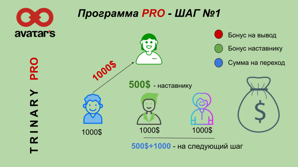 • Со 2-го — бонус Наставнику - $500, а $500 - на развитие системы